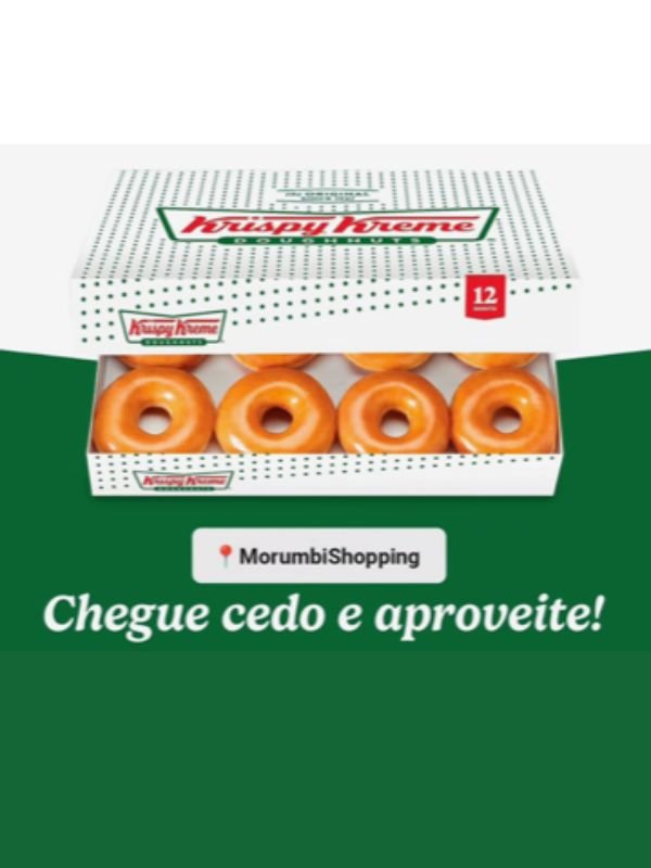 Os 100 primeiros clientes que realizarem uma compra mínima de R$ 54,90 na nova loja do MorumbiShopping ganham uma caixa com 12 donuts Original Glazed, o donut mais icônico da Krispy Kreme.